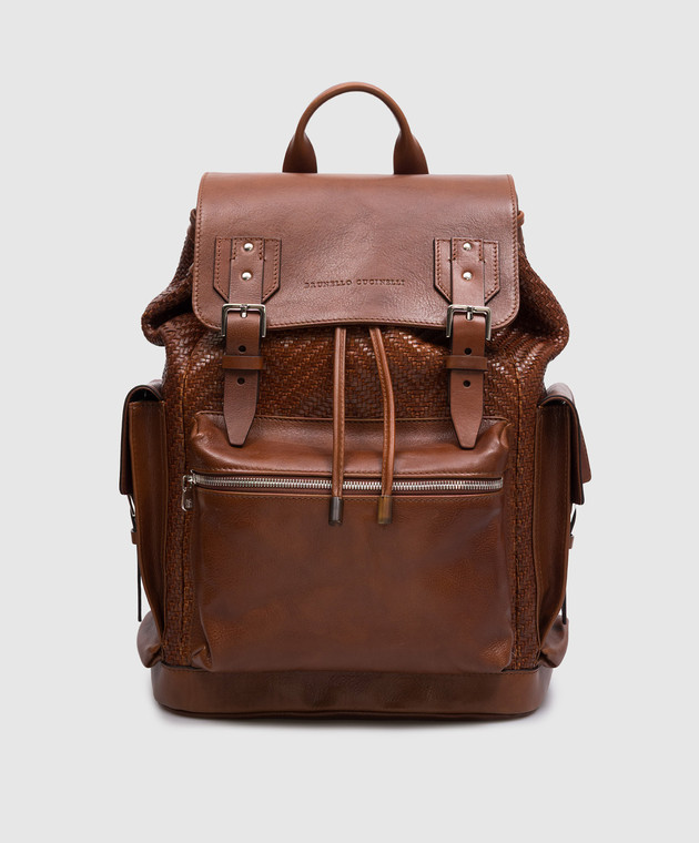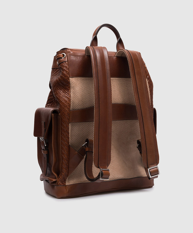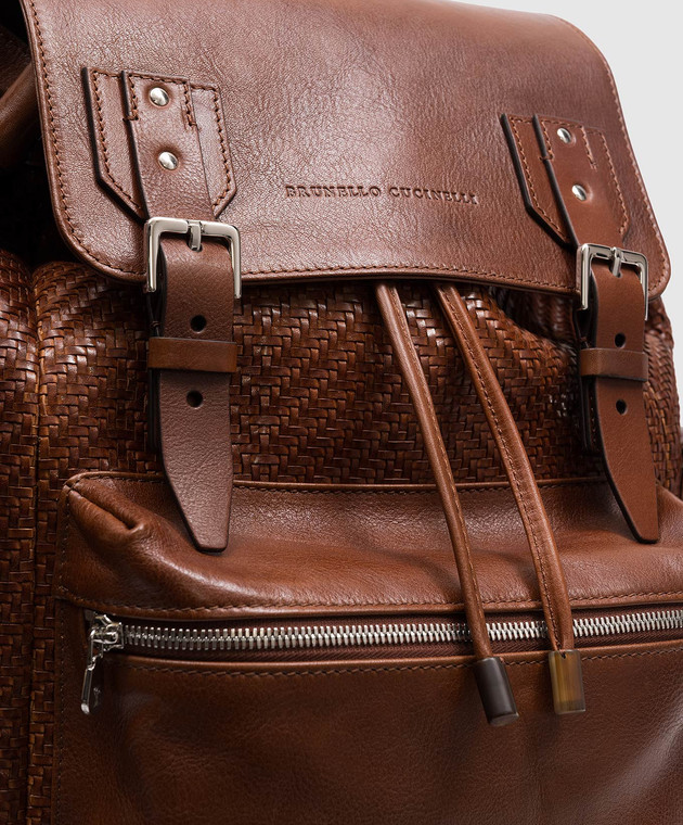 Коричневый кожаный плетеный рюкзак