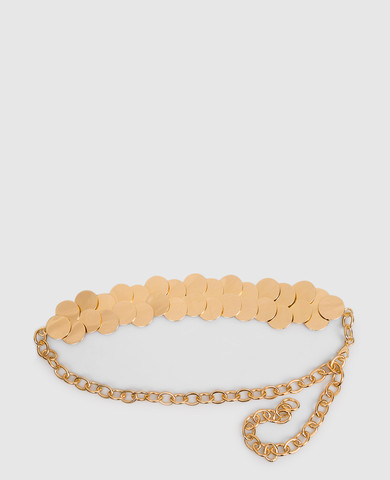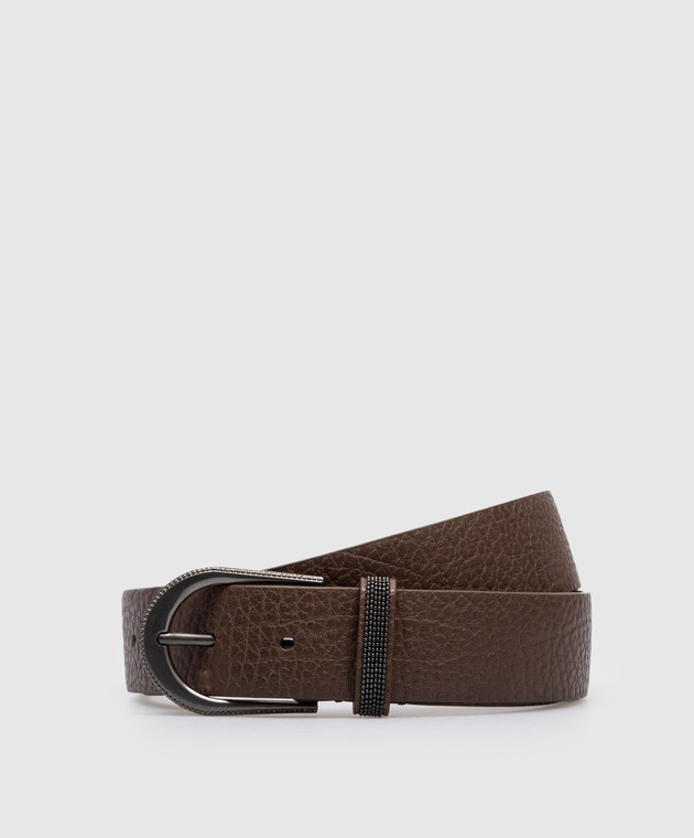 Коричневый кожаный пояс с цепочкой мониль
