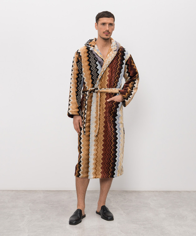 Коричневый махровый удлиненный халат Giacomo в узор