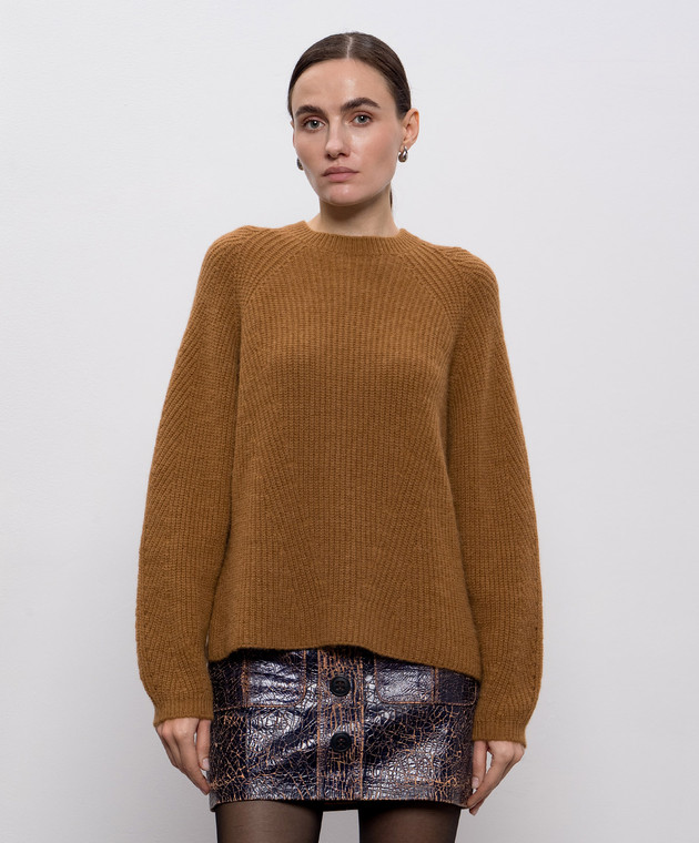 Коричневый свитер с шерстью альпаки с логотипом