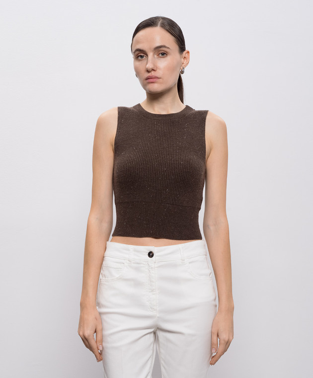 Коричневый топ с шерстью и шелком
