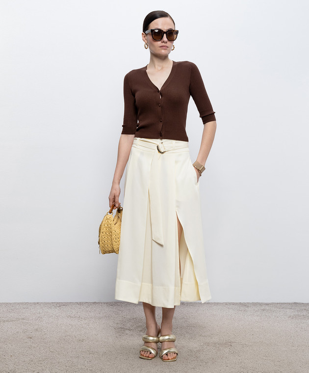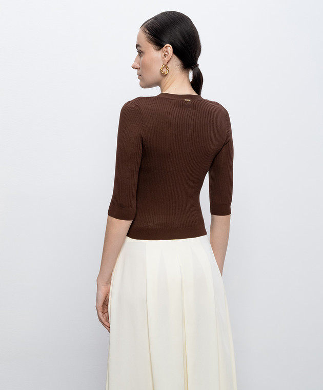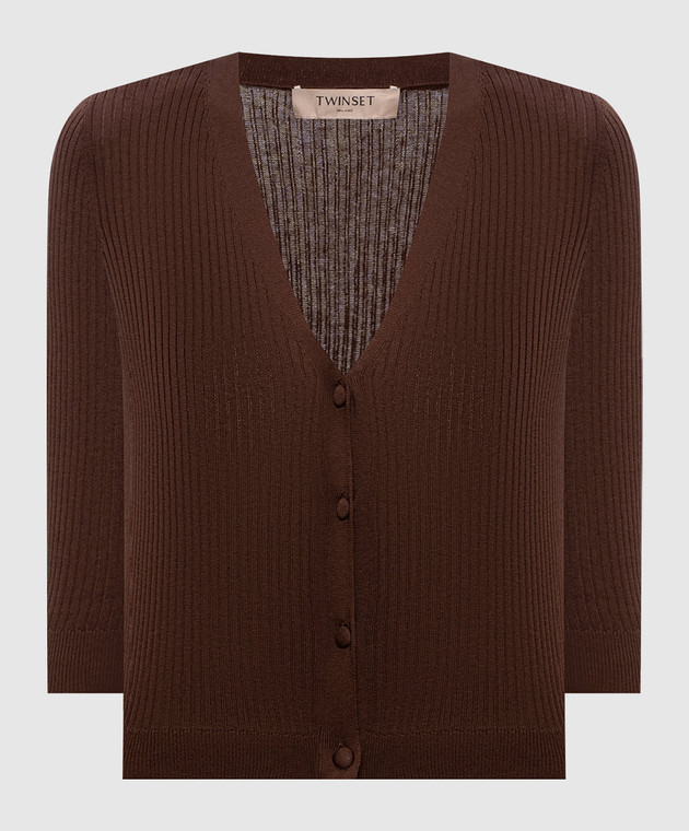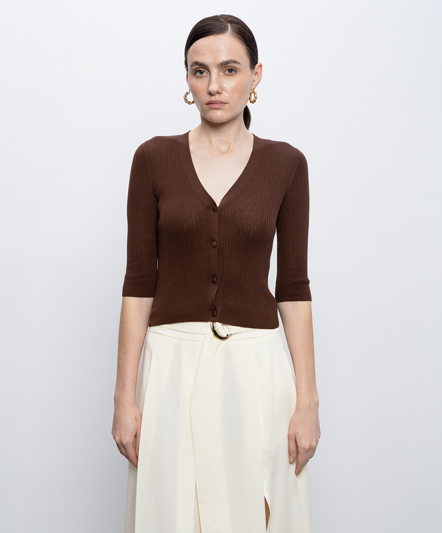 Коричневый укороченный кардиган в рубчик с шелком