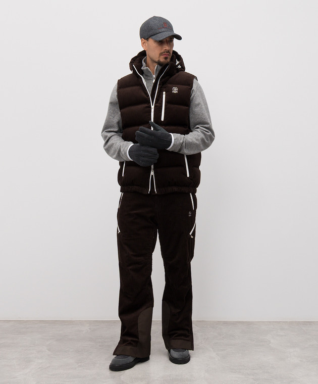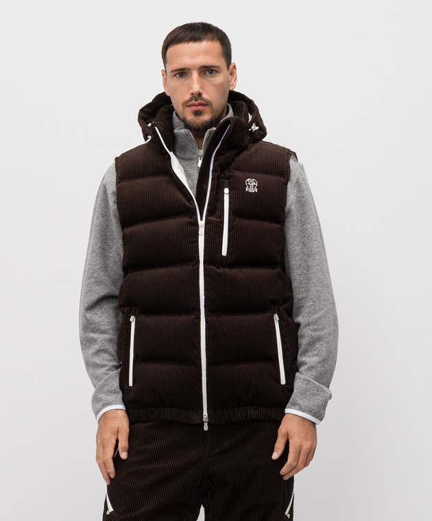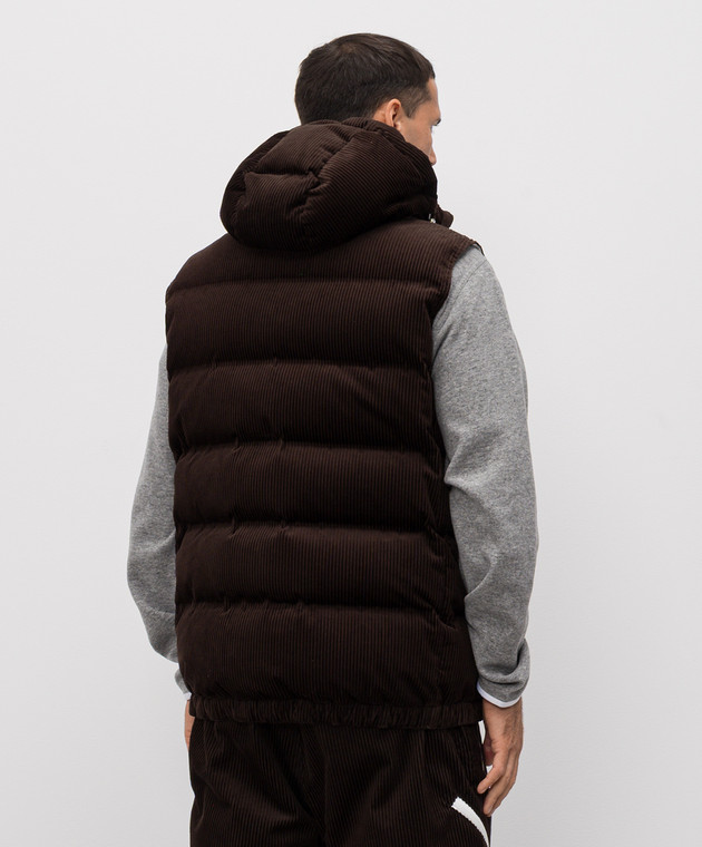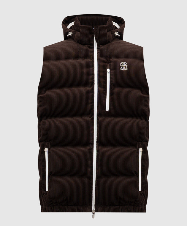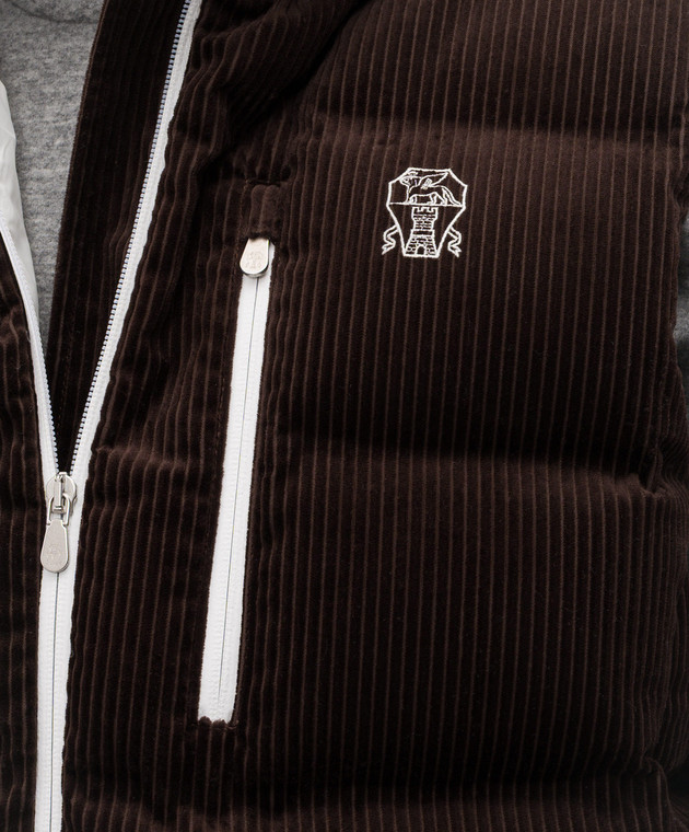 Коричневый вельветовый пуховый жилет с вышивкой эмблемы