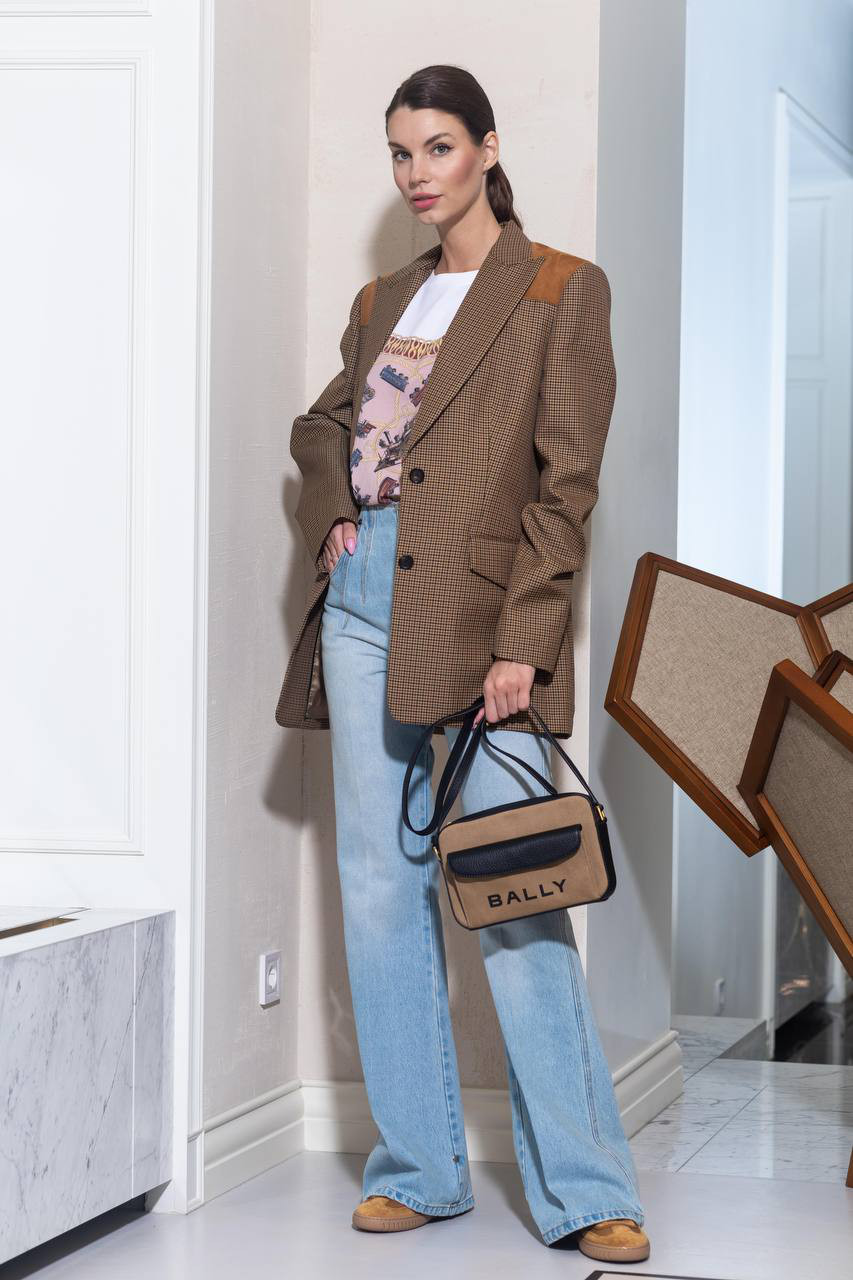 • Декор замшевые вставки, узор гусиная лапка, шлица