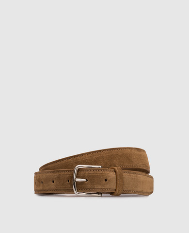 Коричневый замшевый ремень с золотистой пряжкой