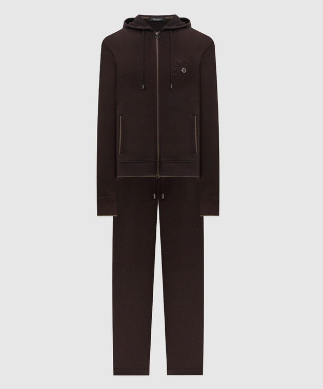 Коричневый спортивный костюм с вышивкой логотипа с металлической монограммой
