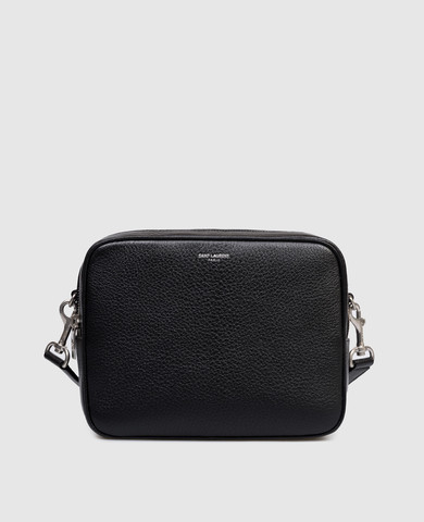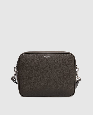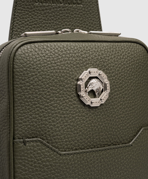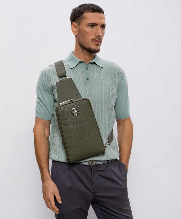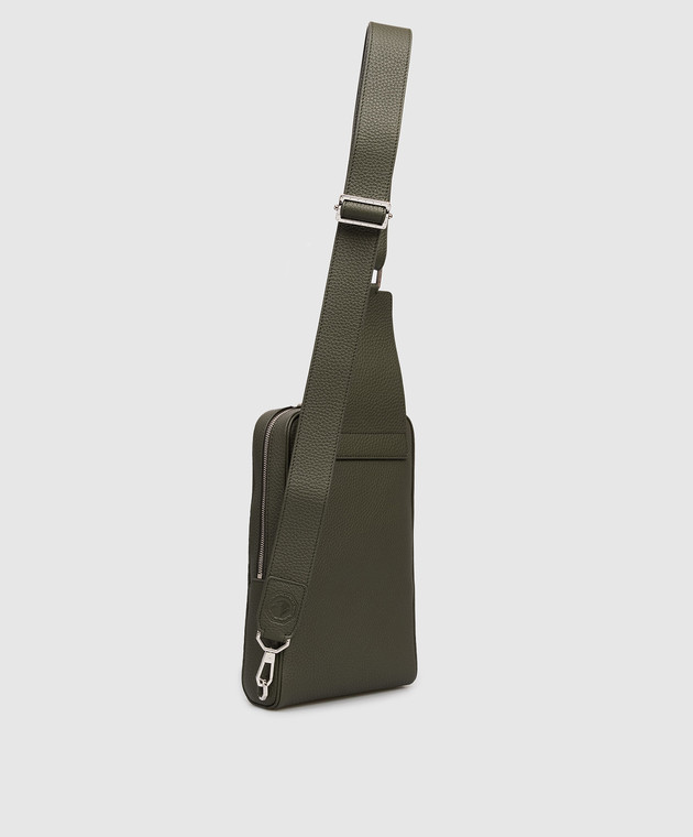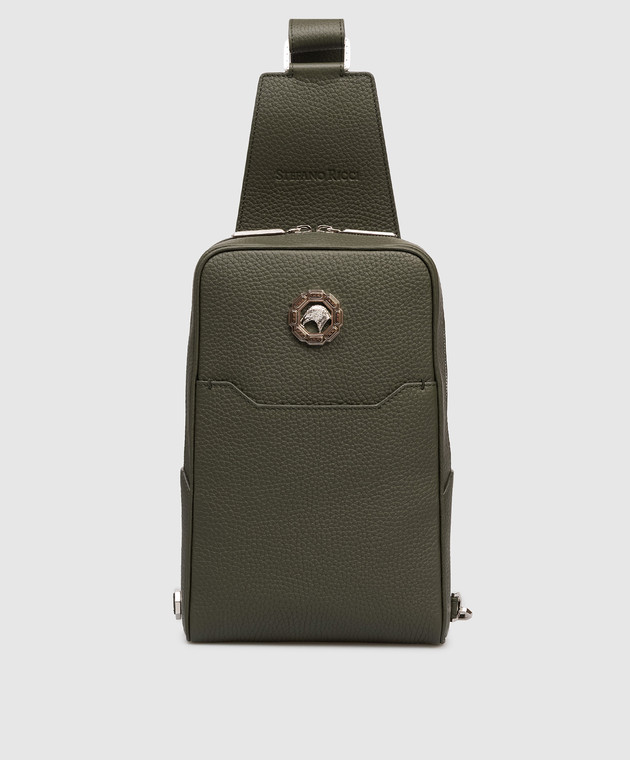 Кожаная сумка слинг цвета хаки с эмблемой и логотипом