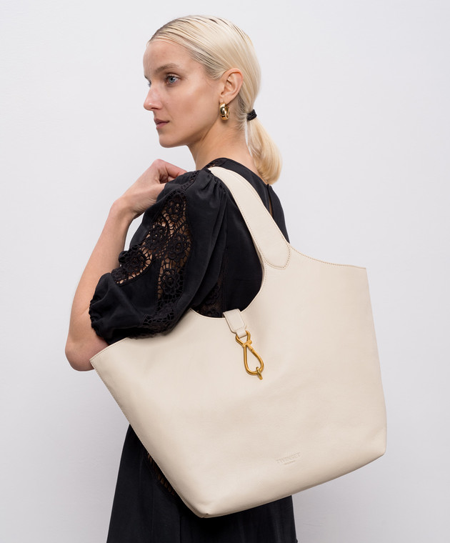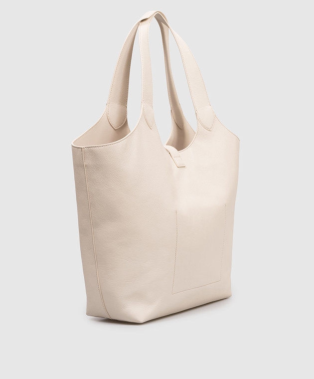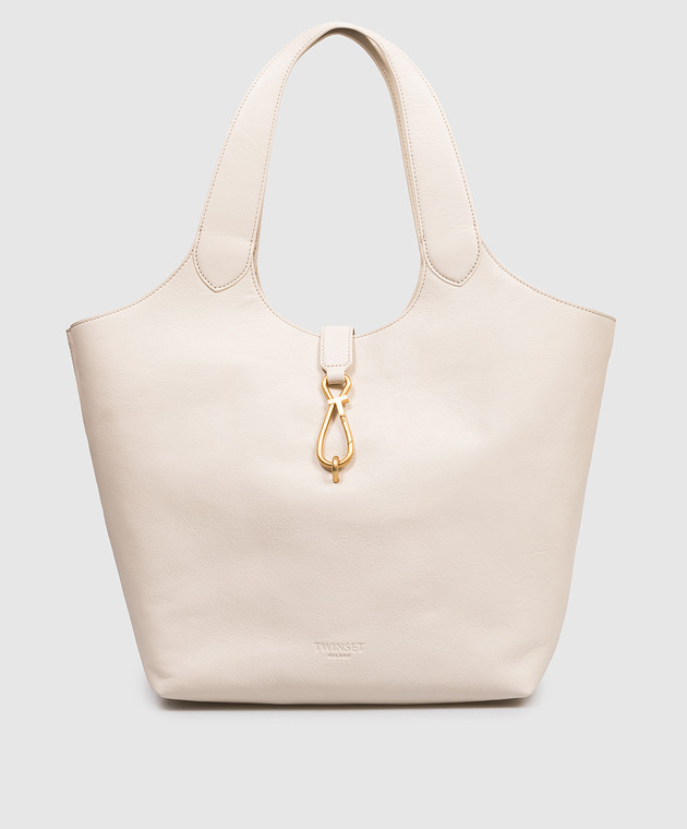 Кожаная сумка-тоут цвета айвори с логотипом