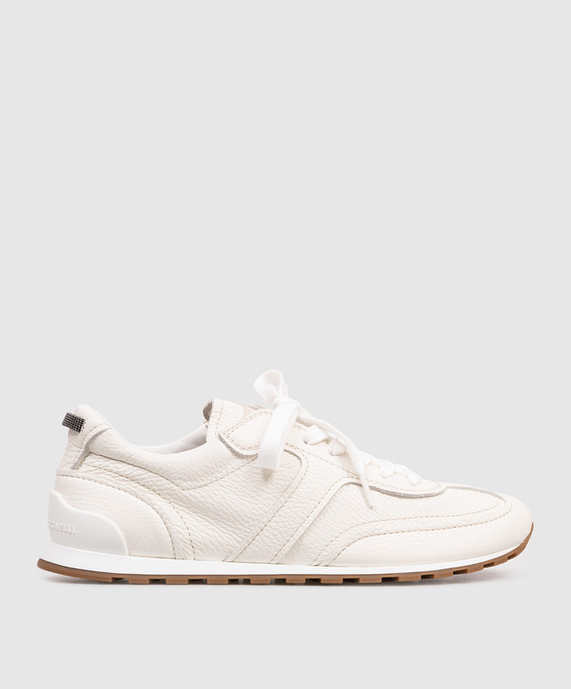 Кожаные кроссовки цвета айвори с цепочкой мониль