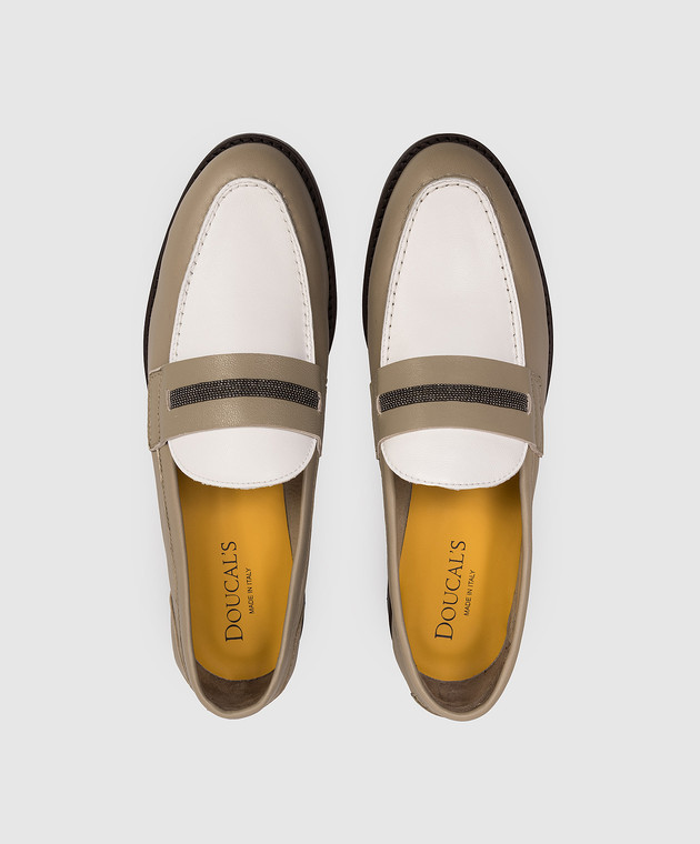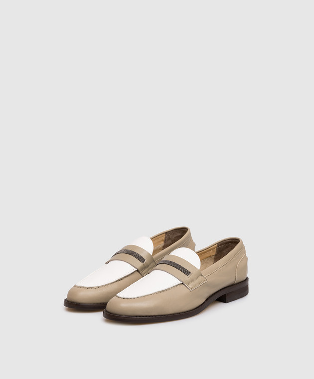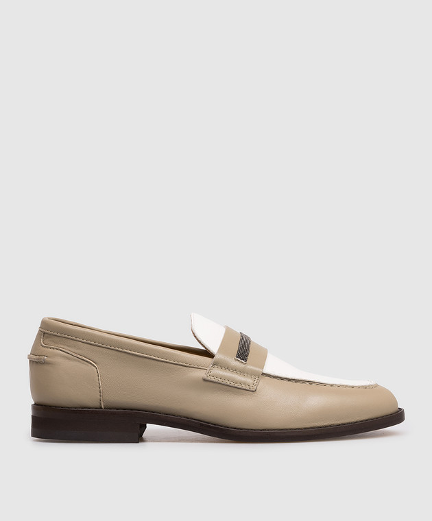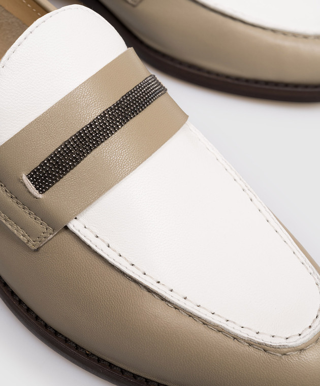 Кожаные лоферы цвета хаки с цепочкой мониль