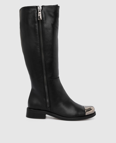 Кожаные сапоги на меху с логотипом