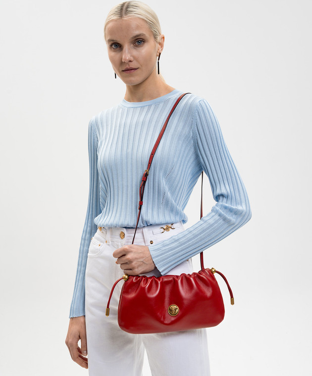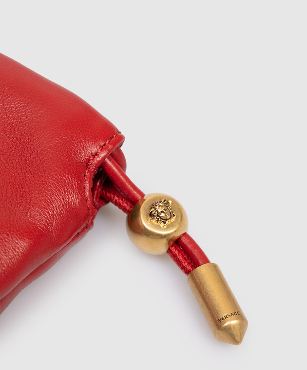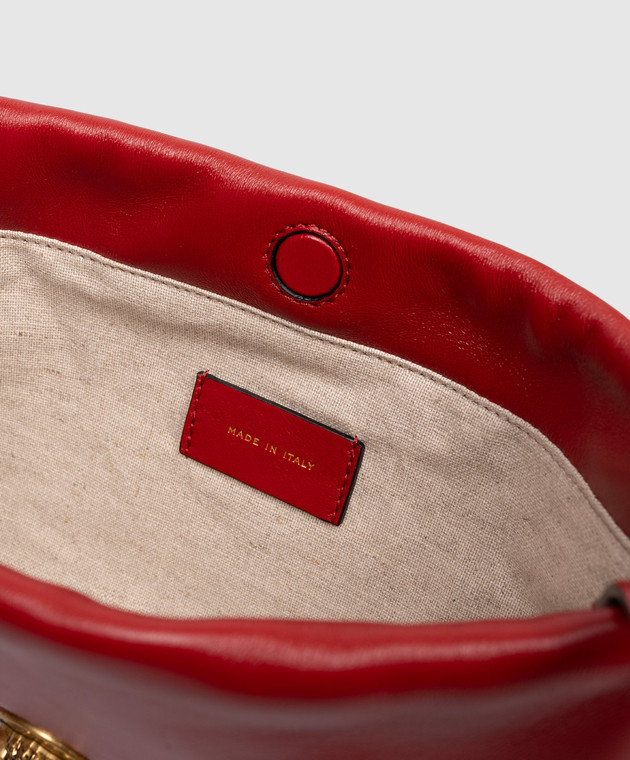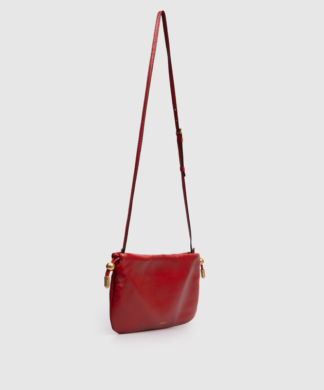 Красная кожаная сука сумка-кисет с фактурной эмблемой