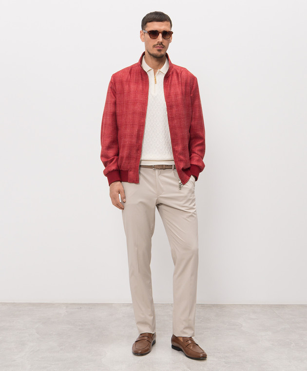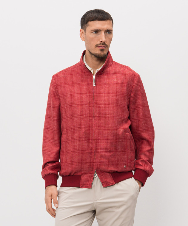 Красная куртка в клетку из кашемира, шелка и льна