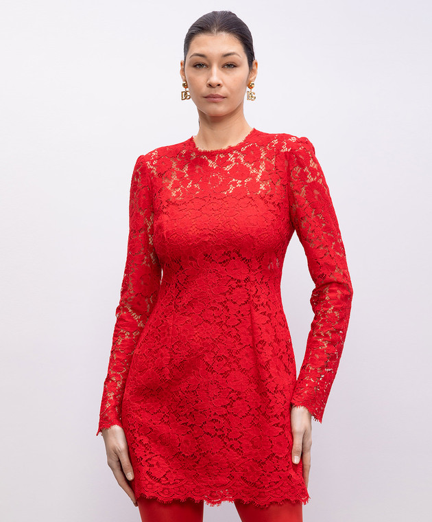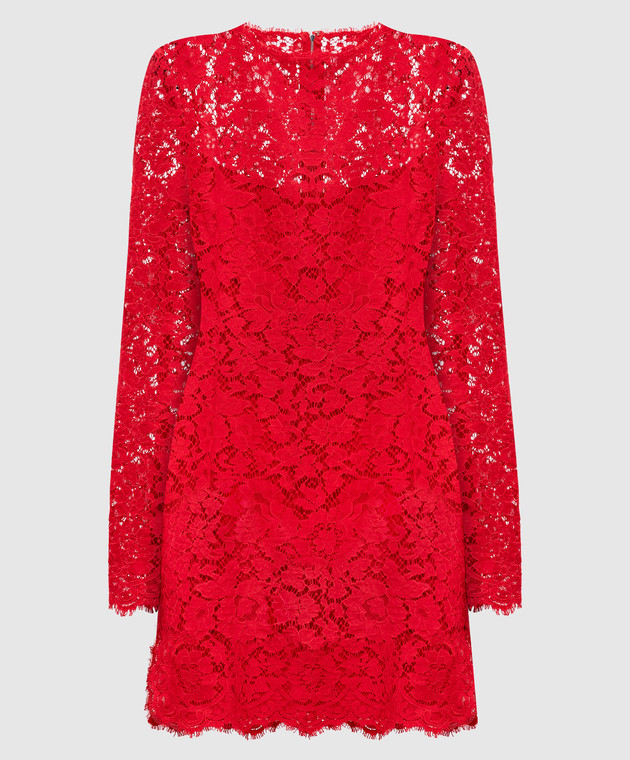 Красное платье-футляр мини из кружева