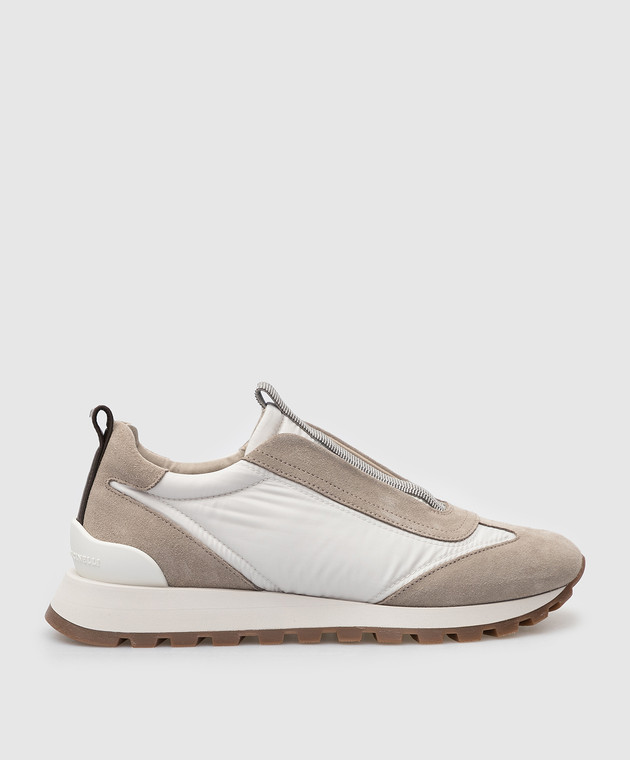 Бежевые кроссовки с замшевыми вставками и цепочками