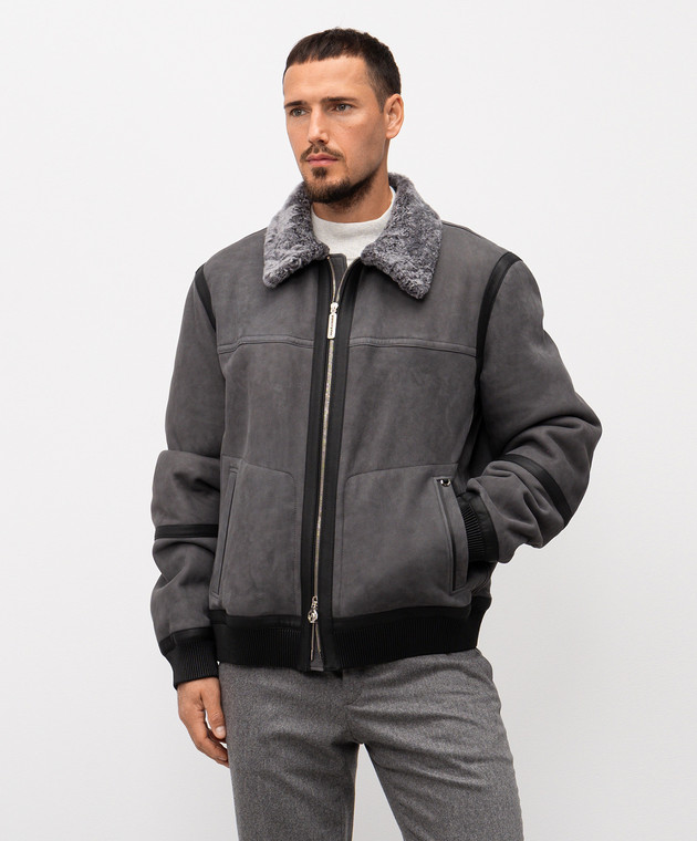 Серая дубленка