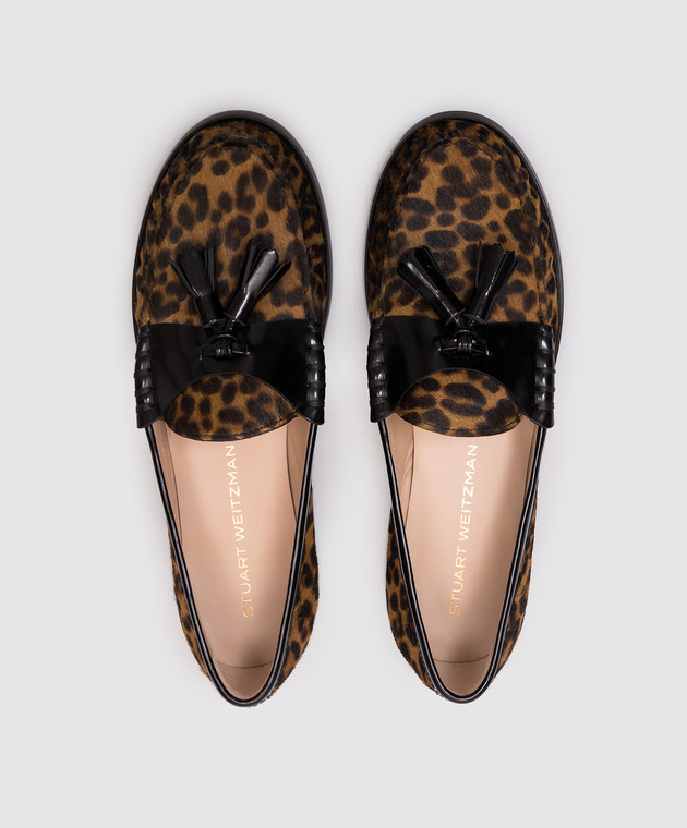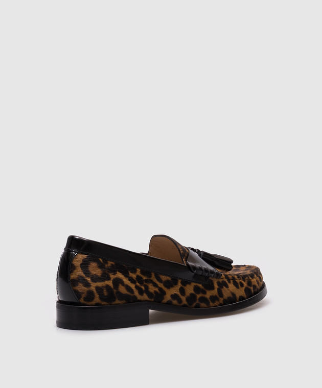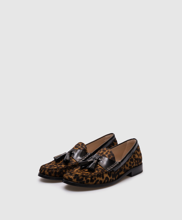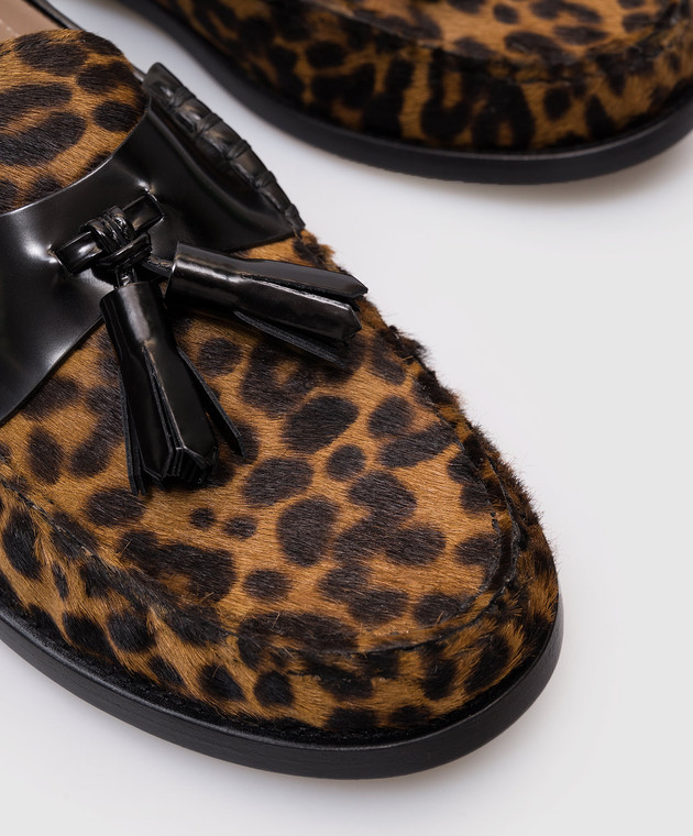 Коричневые кожаные лоферы LOTTIE в анималистичный принт