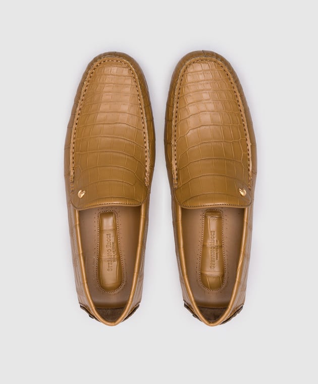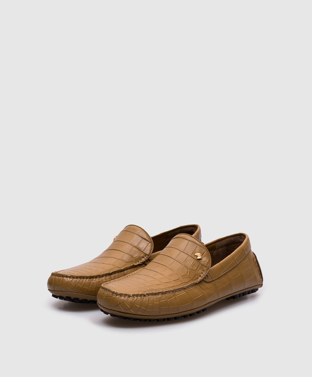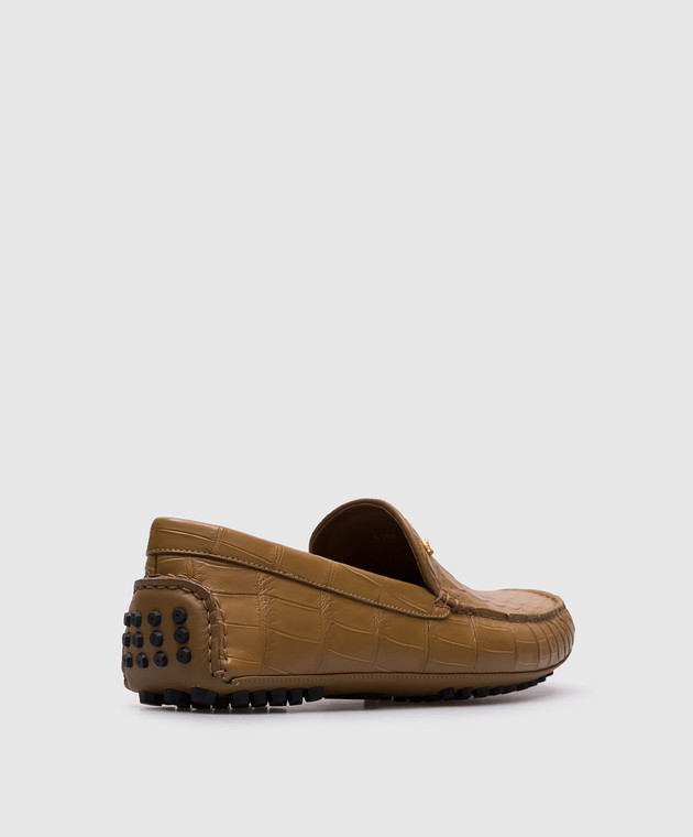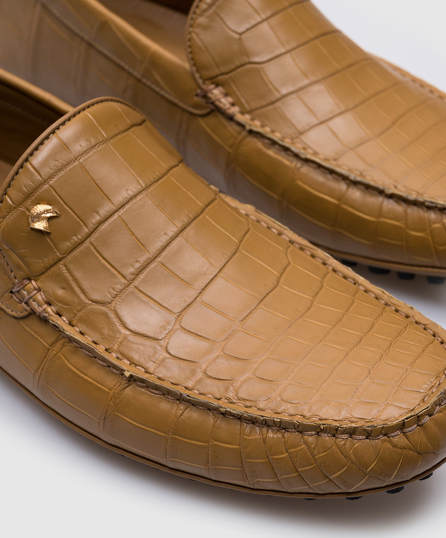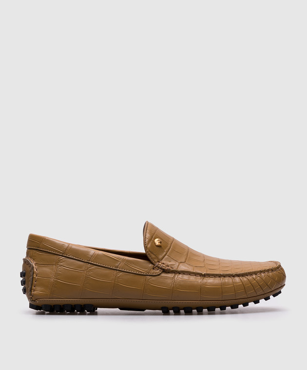 Мокасины цвета хаки из кожи крокодила с эмбемой в виде головы орла