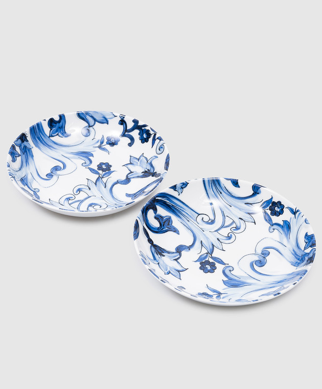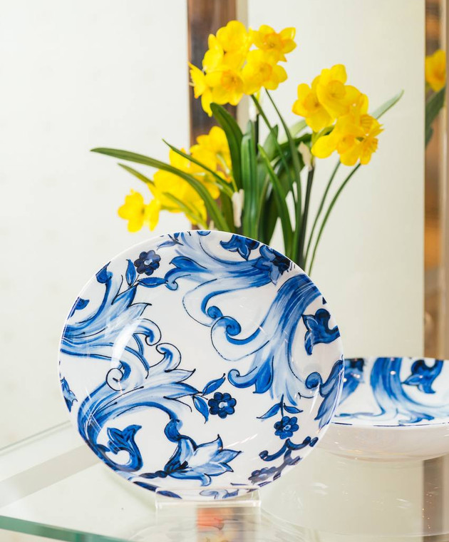 Набор белых фарфоровых тарелок для первых блюд в принт Blu Mediterraneo