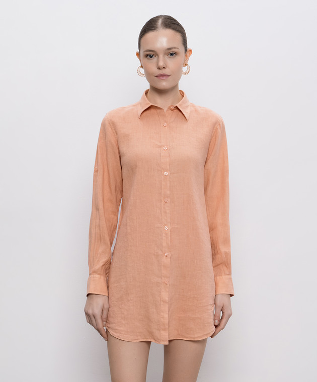 Оранжевая удлиненная рубашка из льна