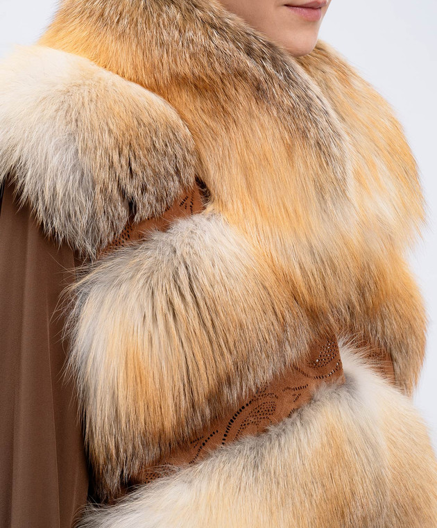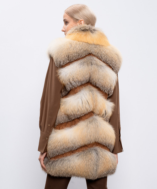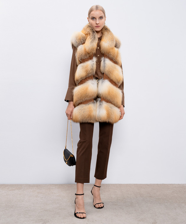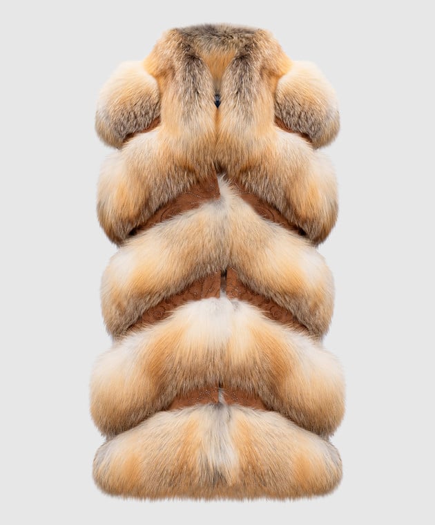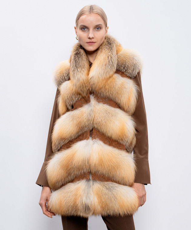 Оранжевый жилет из меха лисы с замшевыми вставками