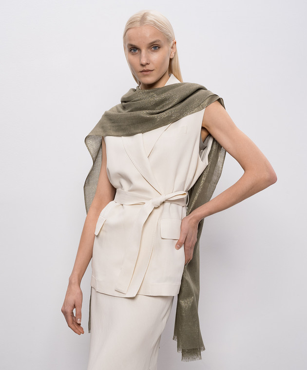 Палантин цвета хаки с кашемиром и шелком с люрексом