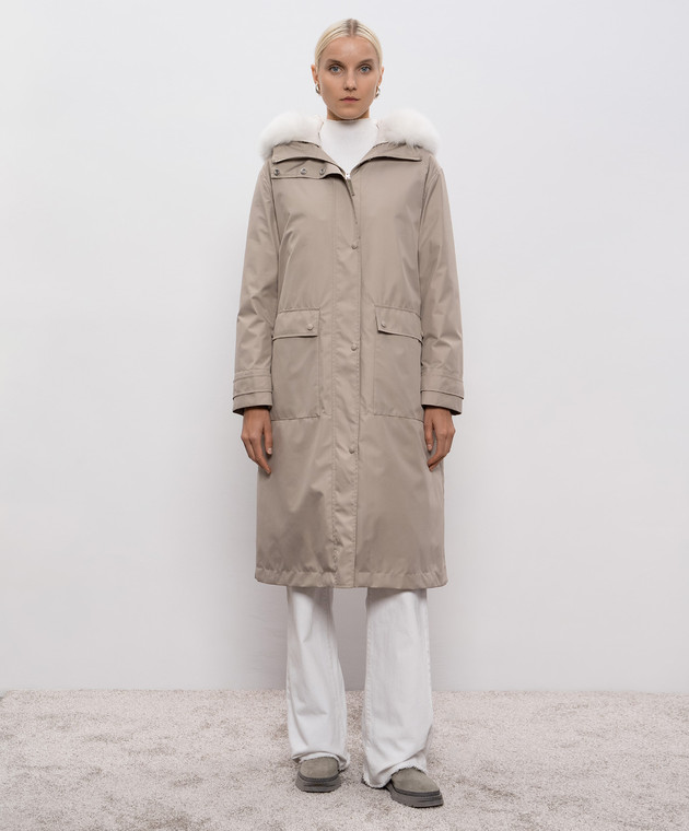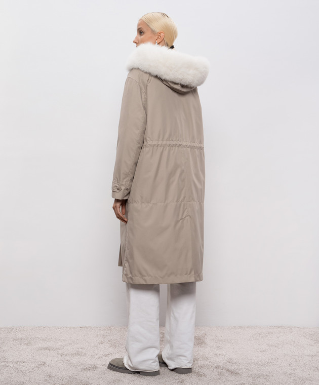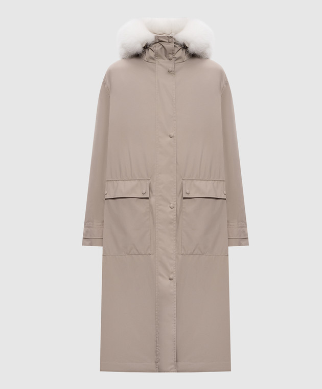 Парка цвета хаки с мехом лисы