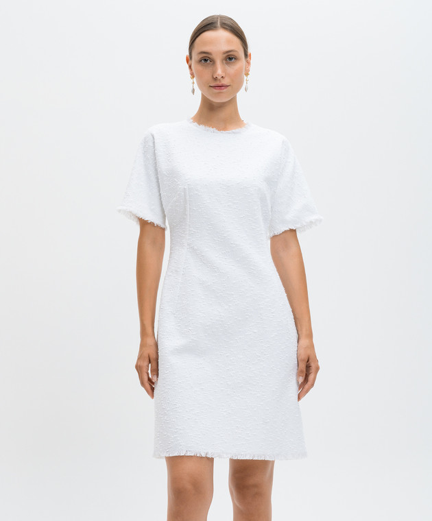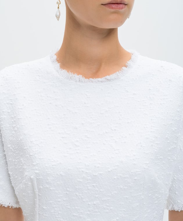 Белое твидовое платье мини с льном