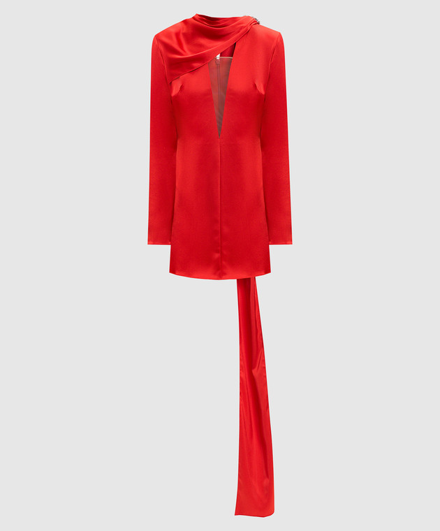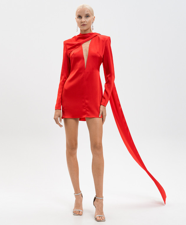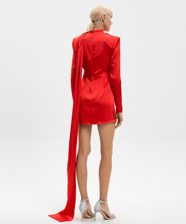 Красное платье мини со шлейфом