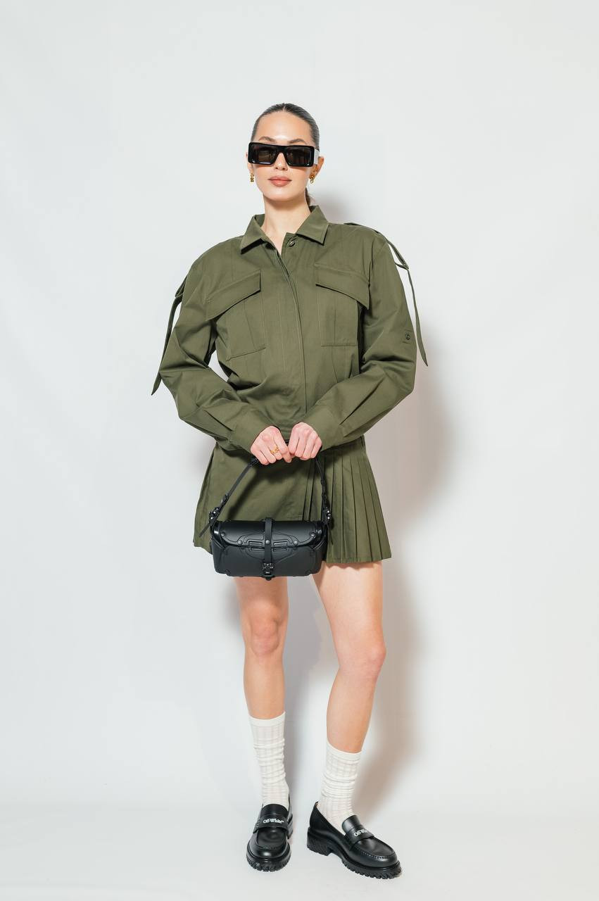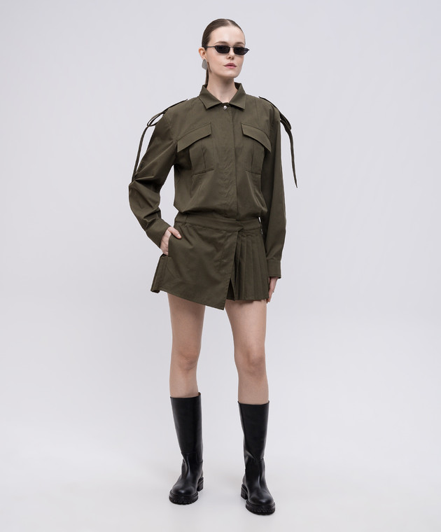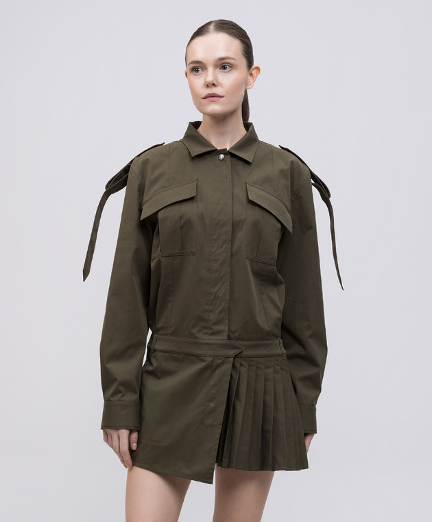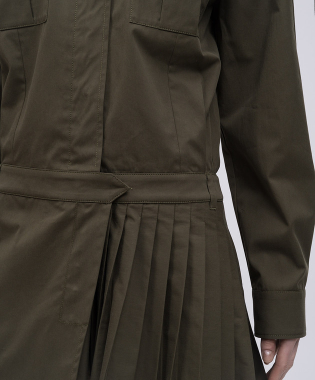 Платье-рубашка с плиссированием цвета хаки