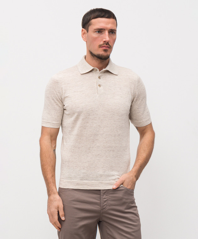 Поло бежевого цвета с леном