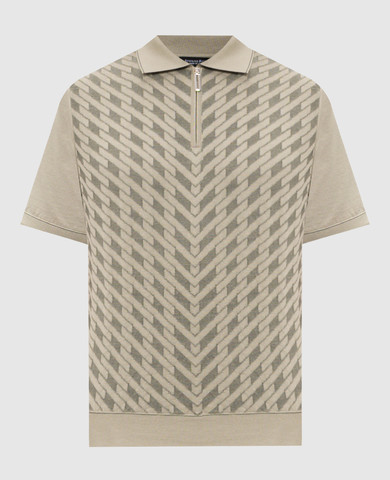 Поло цвета хаки из шелка с вышивкой логотипа монограммы
