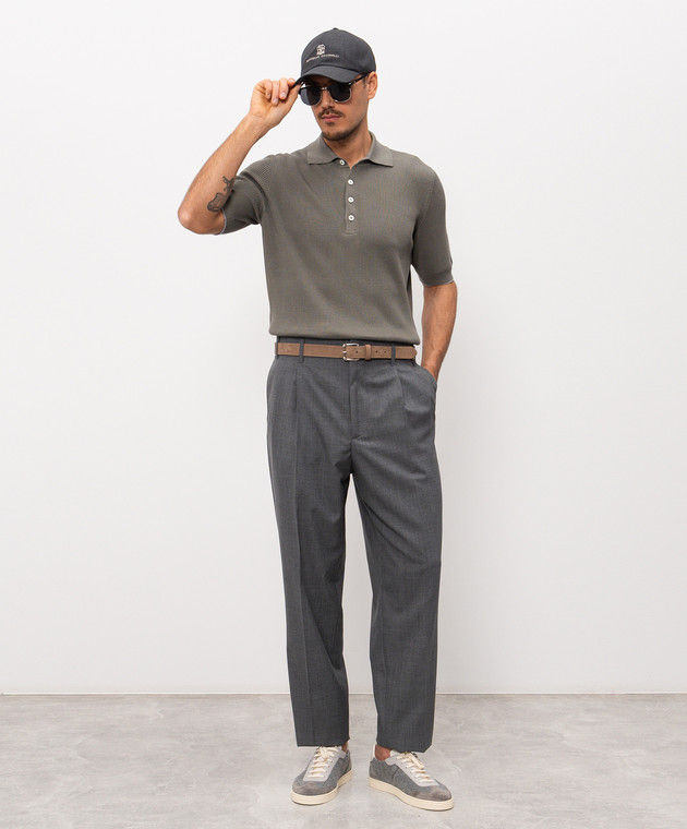 Поло цвета хаки в рубчик