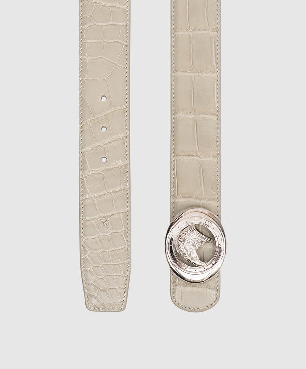 Ремень цвета хаки из кожи крокодила
