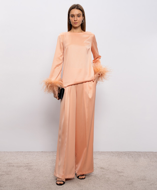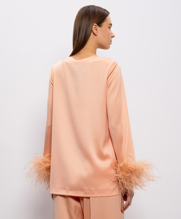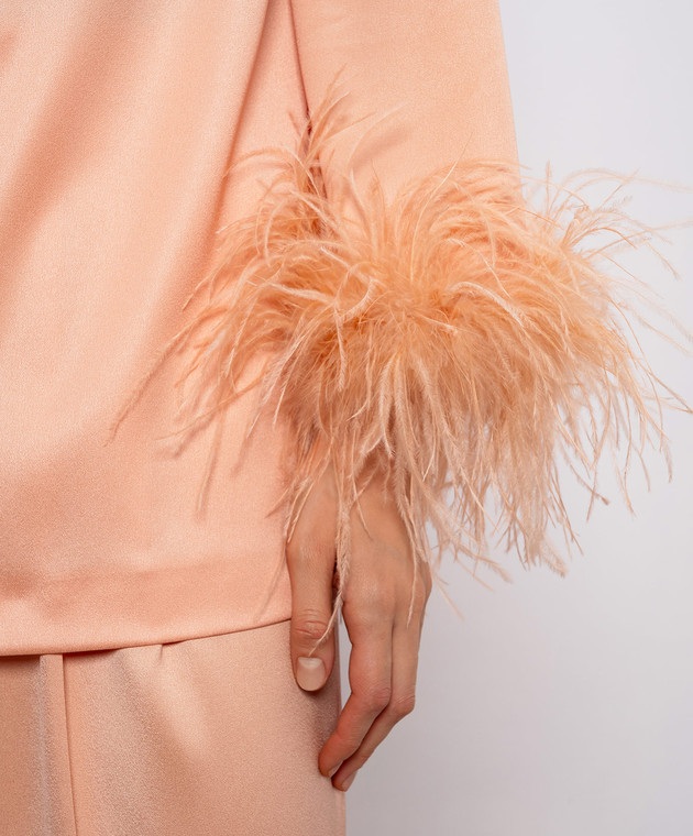Розовая блуза с перьями страуса