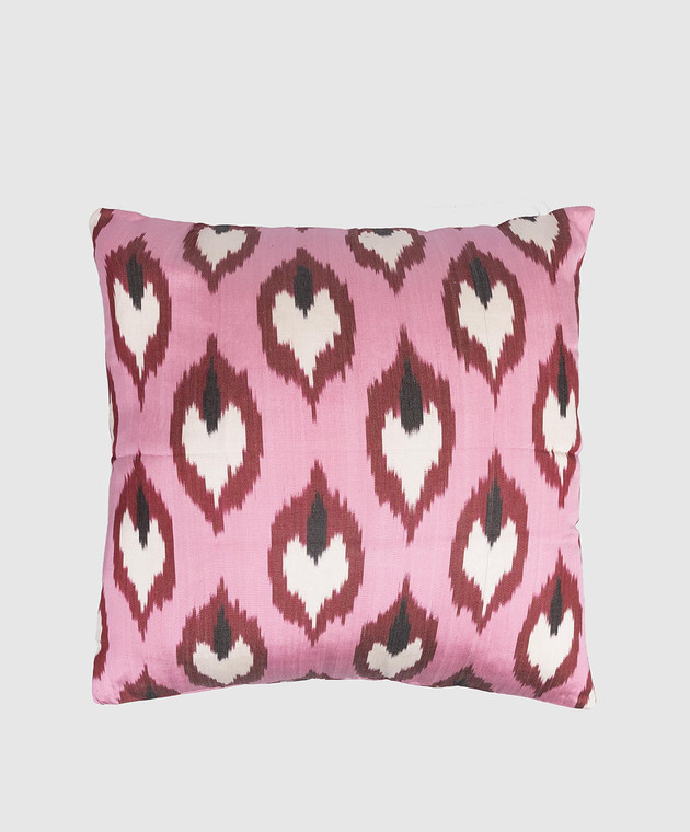 Розовая декоративная подушка из шелка с принтом