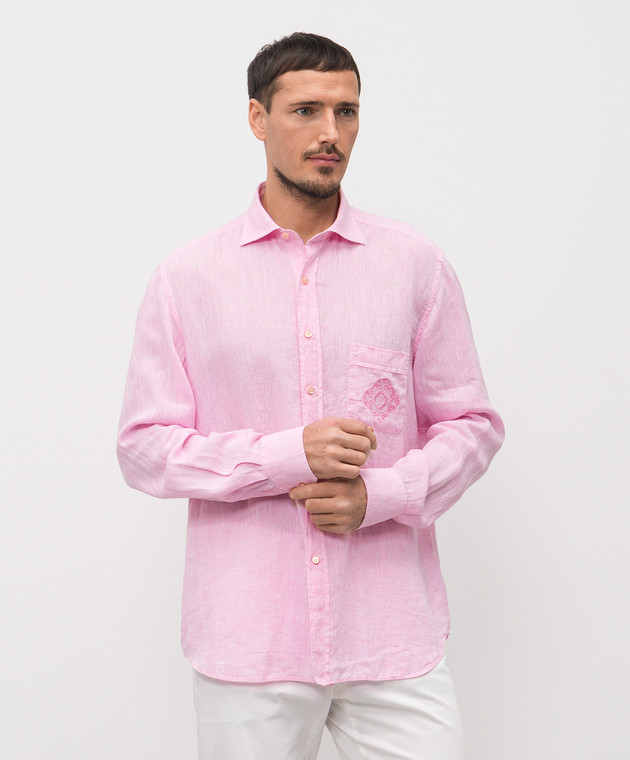 Розовая рубашка из льна