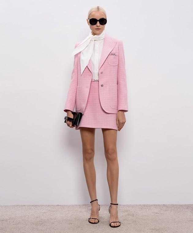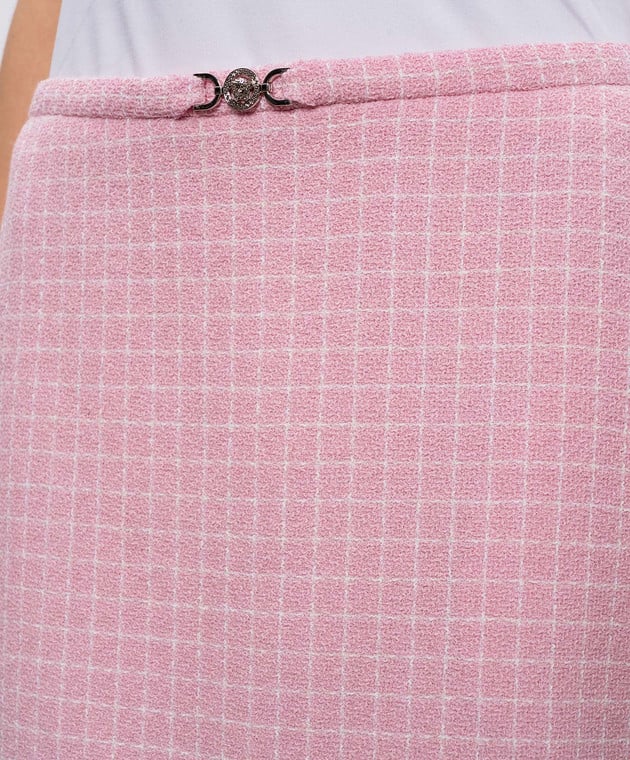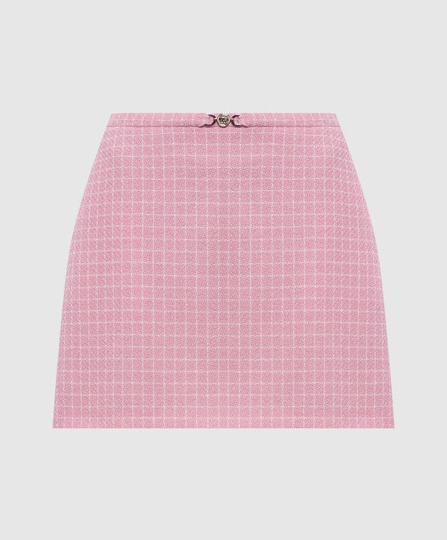 Розовая юбка мини в клетку с шерстью