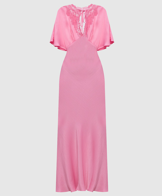 Розовое платье макси с кружевом