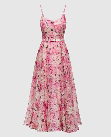 Розовое платье миди