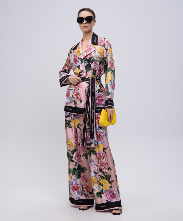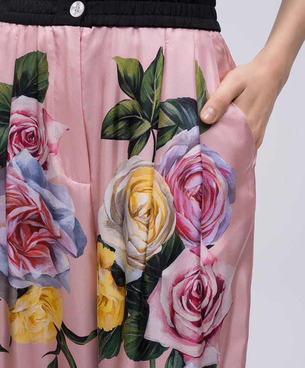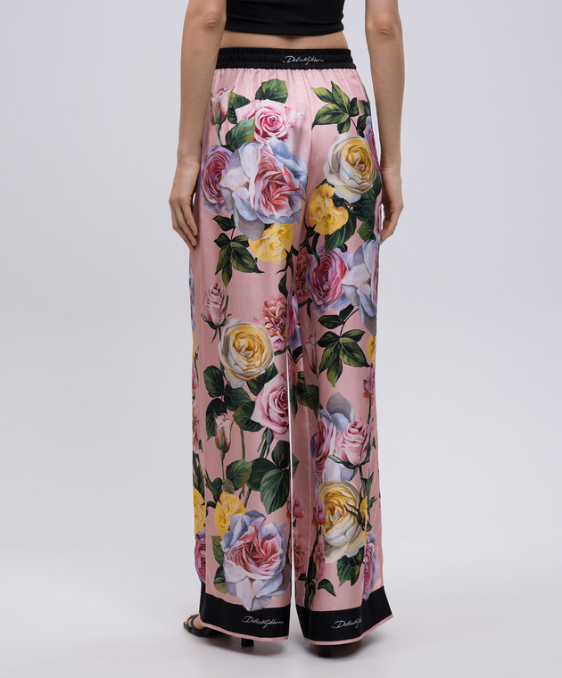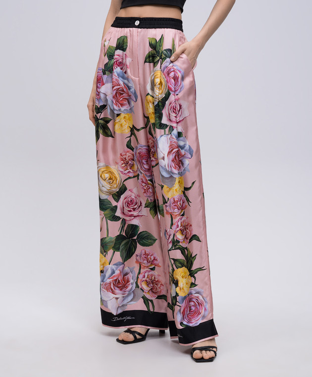 Розовые брюки из шелка в цветочный принт