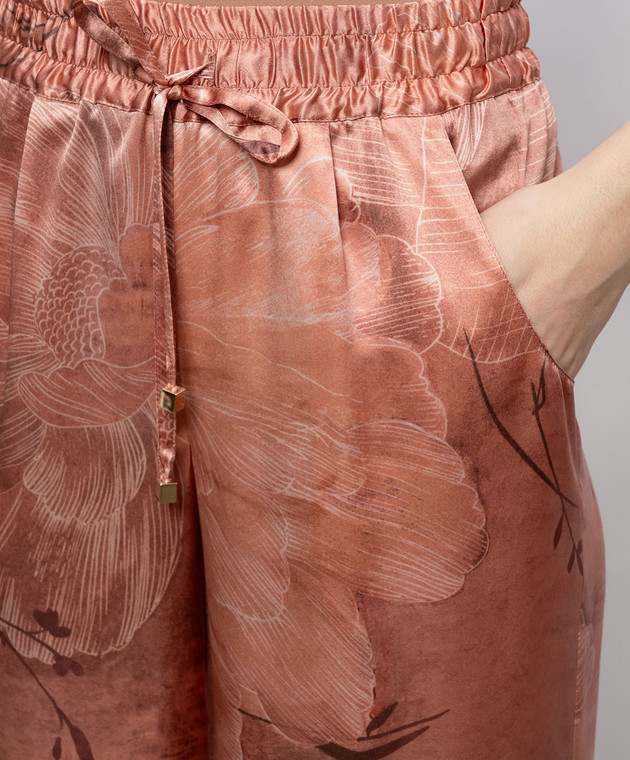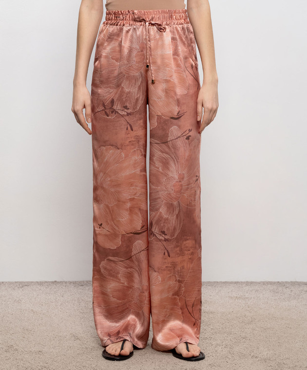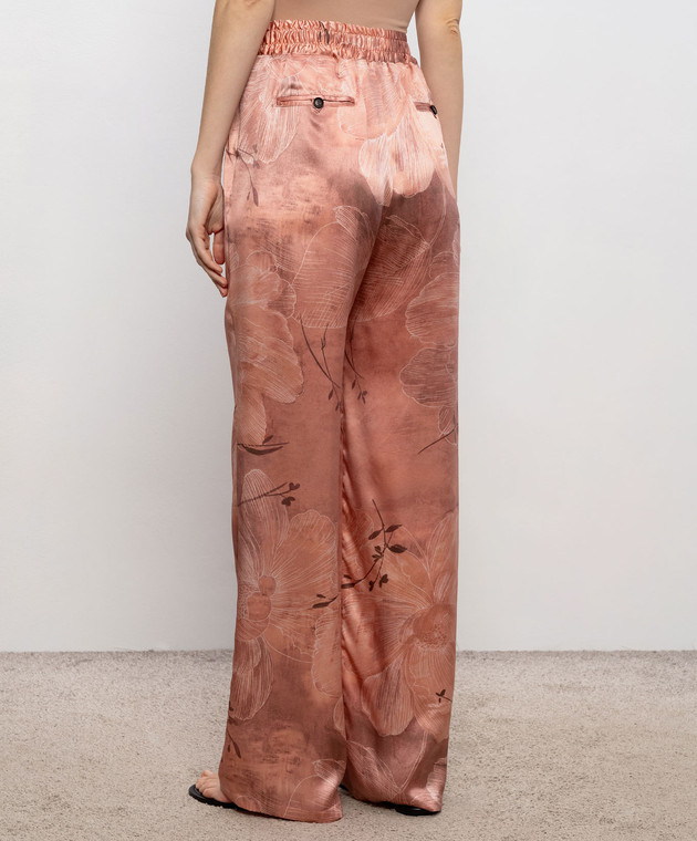 Розовые брюки из шелка в цветочный принт