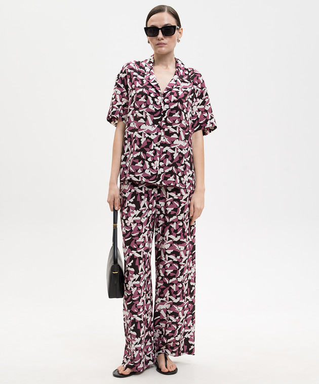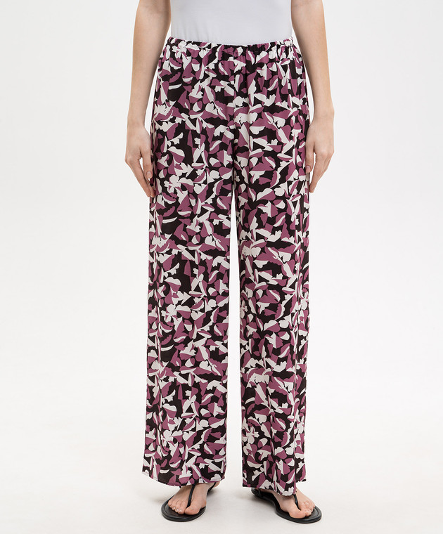 Розовые брюки из шелка в принт