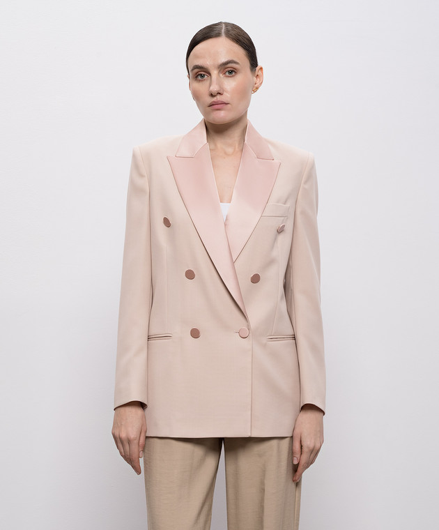 Розовый двубортный жакет с шерстью