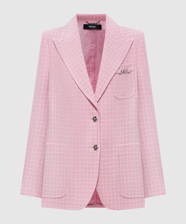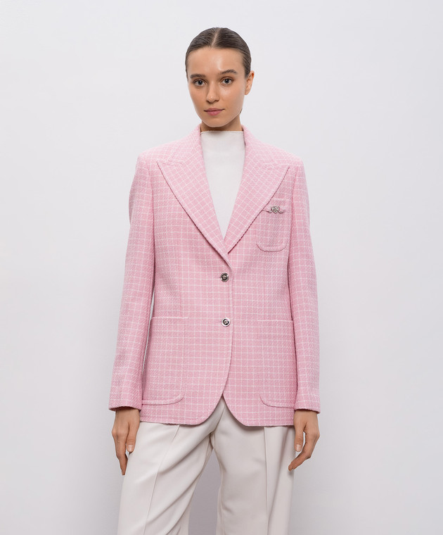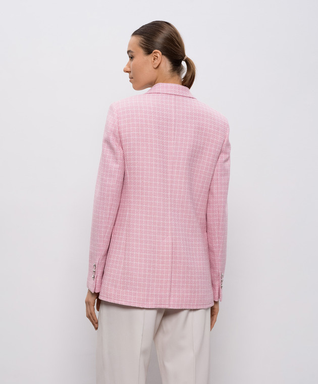 Розовый жакет с шерстью в клетку