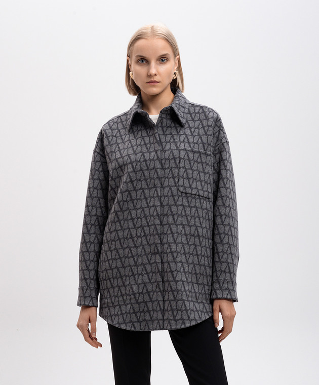 Серая двусторонняя куртка из шерсти и кашемира с узором Toile Iconographe