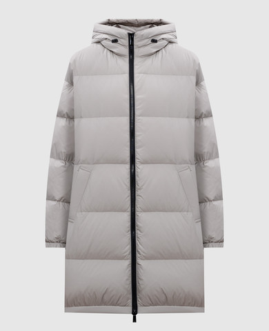 Серая комбинированная пуховая куртка с мехом лисы