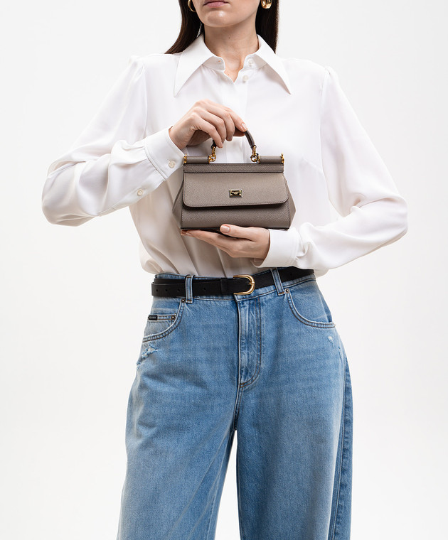 Серая кожаная сумка-мини Sicily