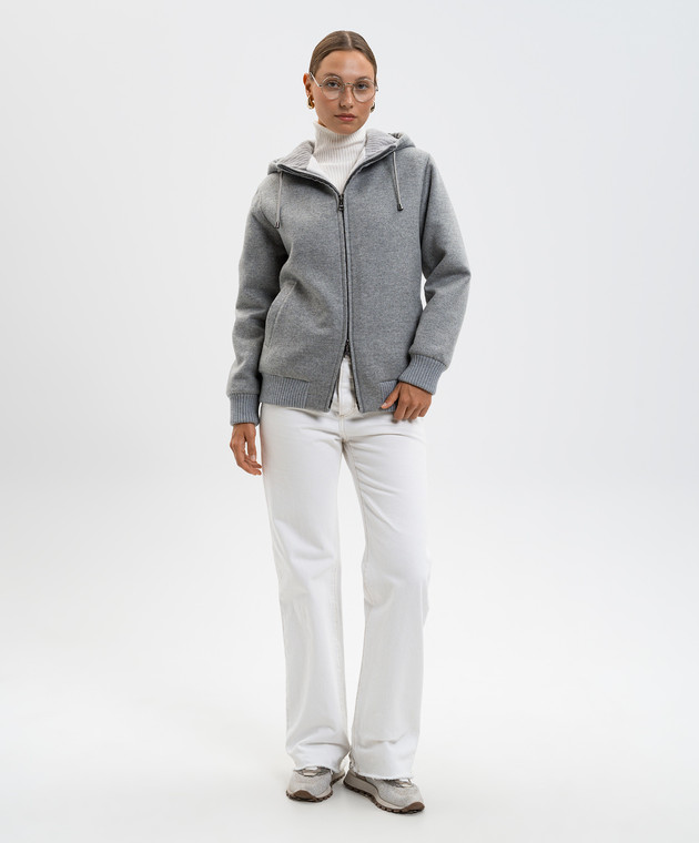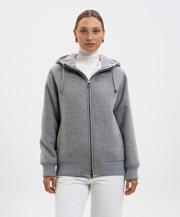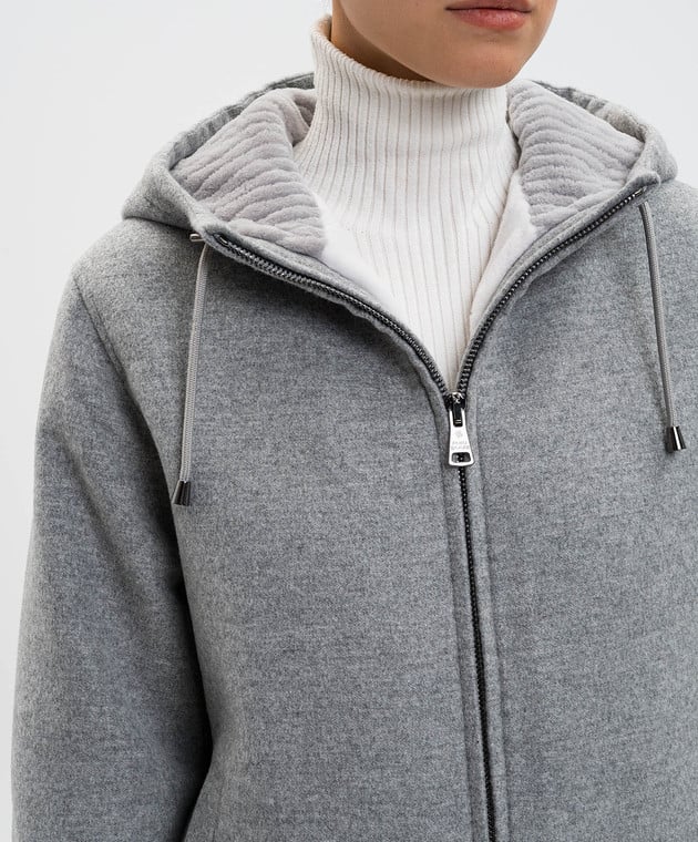 Серая куртка из кашемира с мехом норки