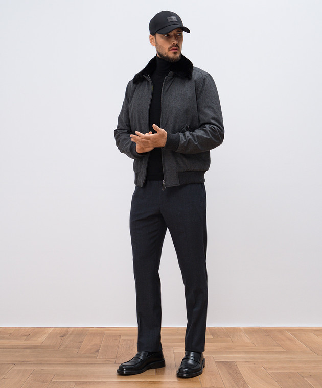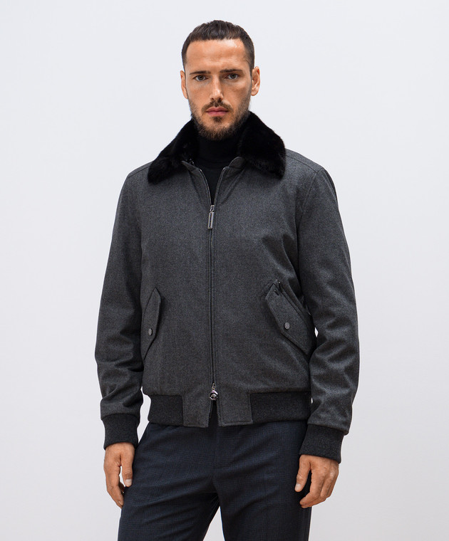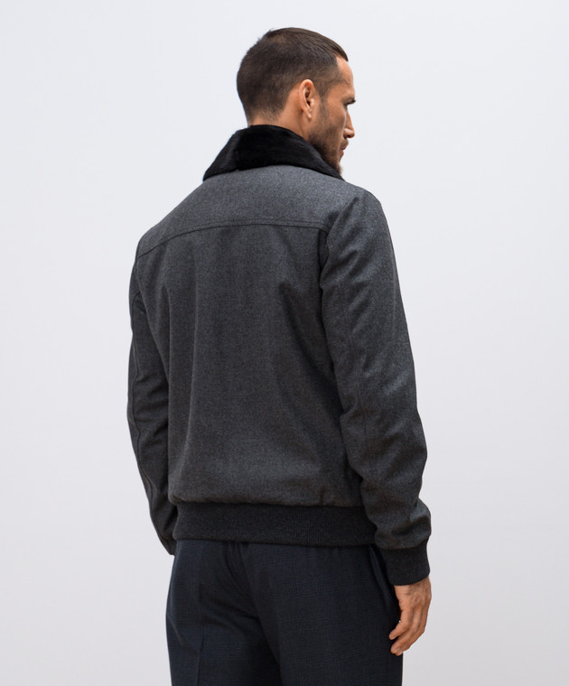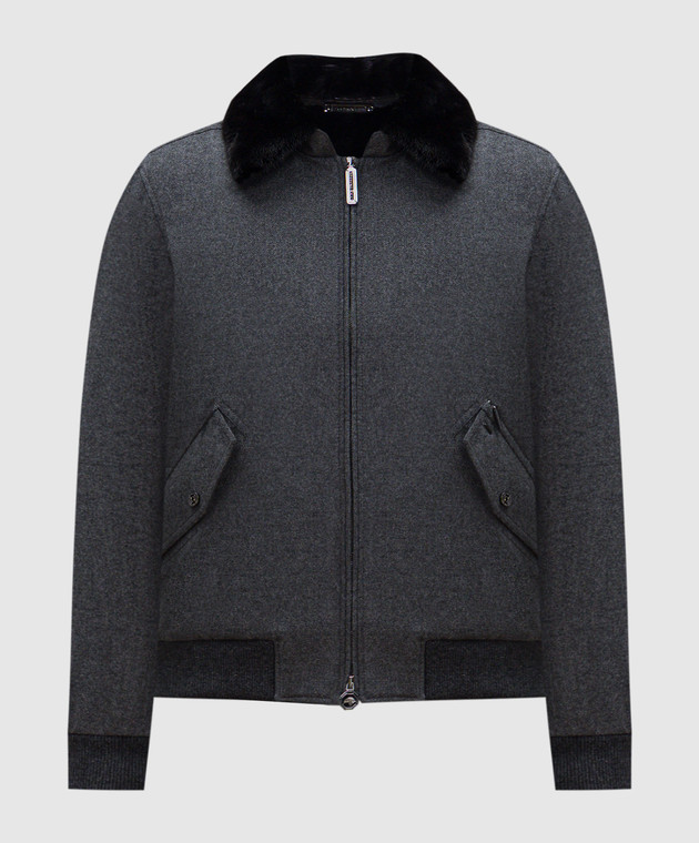 Серая куртка из шерсти и кашемира на меху нутрии с мехом норки